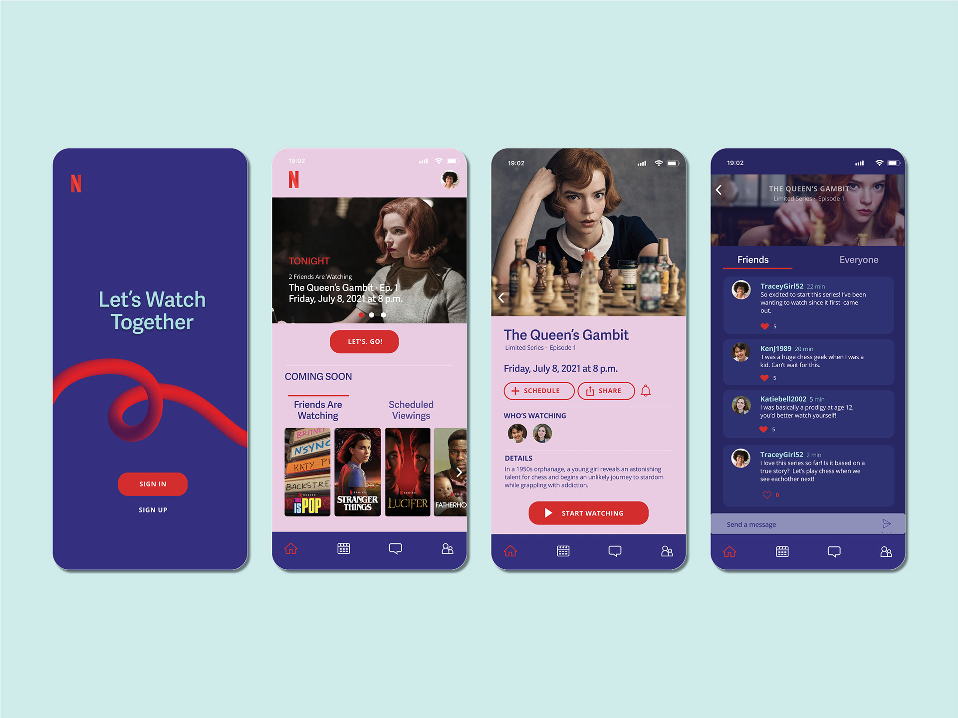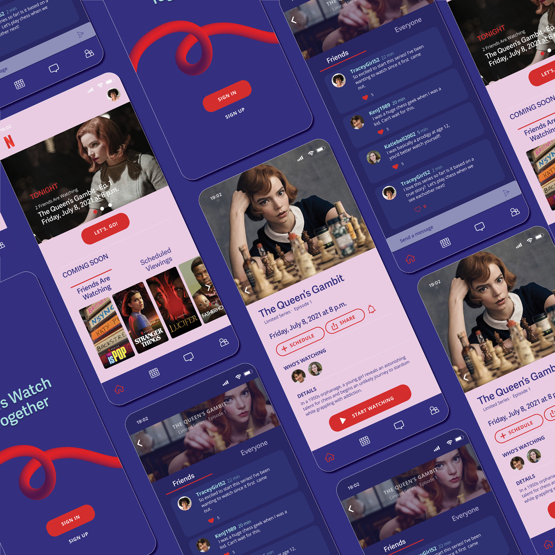In today’s entertainment, the flexibility of streaming has taken away the excitement and connection of watching content simultaneously as a cultural event. To solve this, I created an app and campaign called Let’s Watch Together. The app functionality allows users to schedule and share viewings, and chat while they watch.