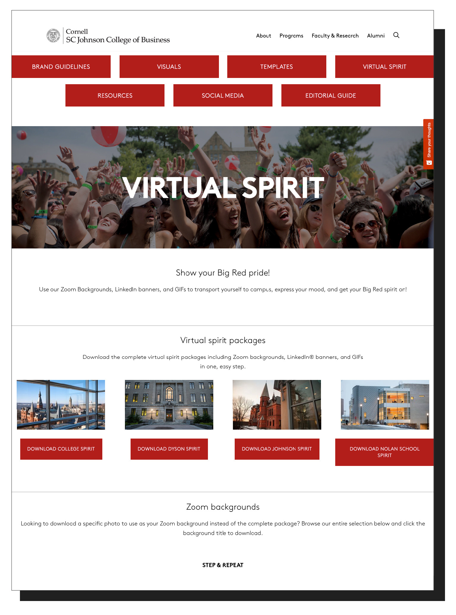 When the pandemic forced campus events online, I created a resource page to help the Johnson community maintain school spirit virtually.