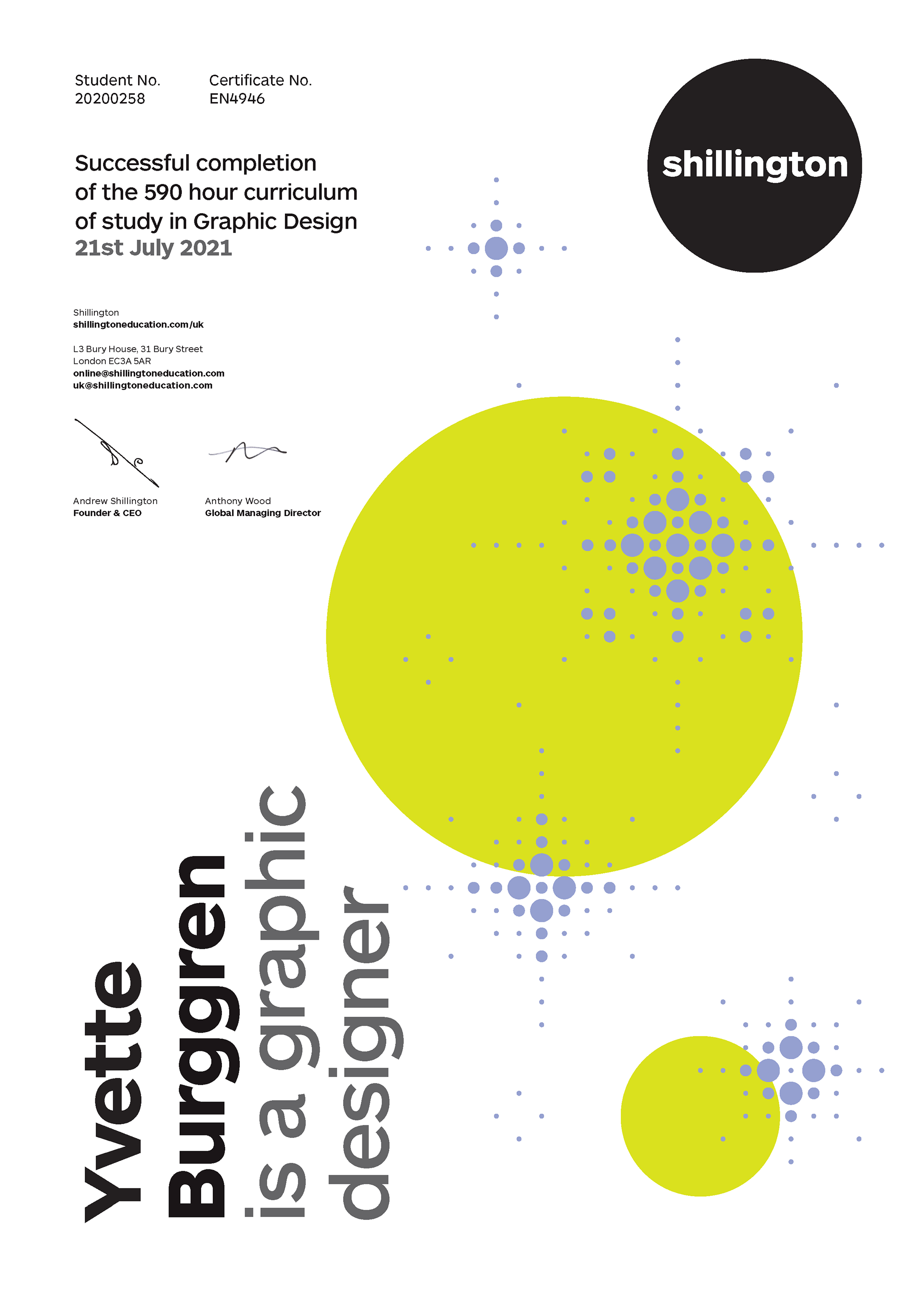 Yvette's Shillington Certfication