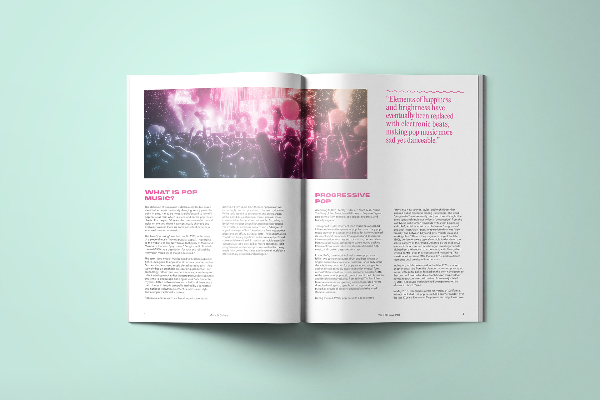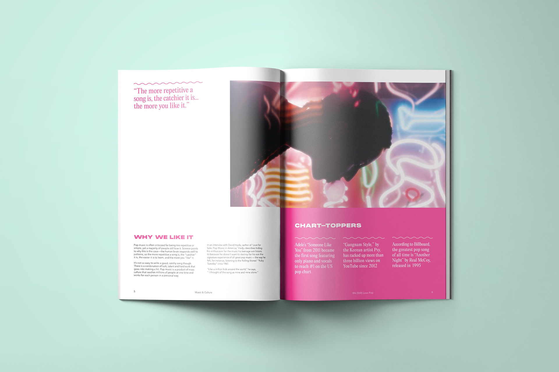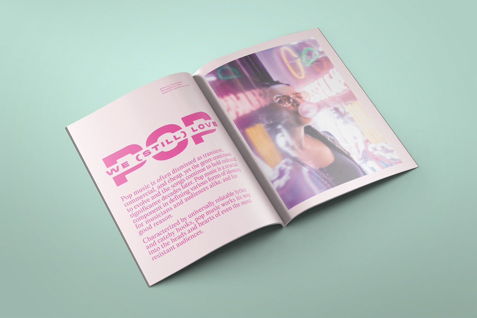 Created for Resonate, a quarterly music magazine, We (Still) Love Pop explores the cultural significance of pop music and how it’s evolved in the last several decades. The layout embraced the bright color and youthful energy of the genre.